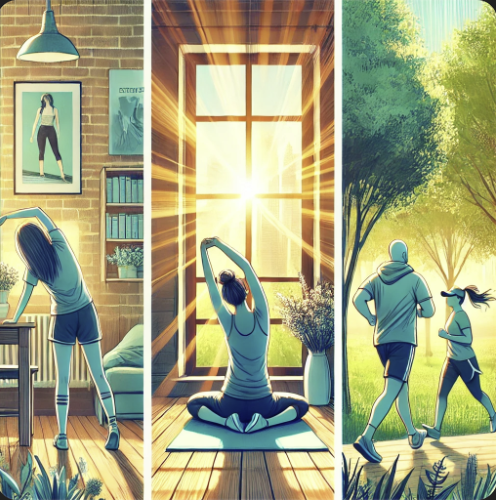 - 아침: 기상 후 스트레칭 & 가벼운 운동 + 단백질과 건강한 탄수화물이 포함된 아침 식사